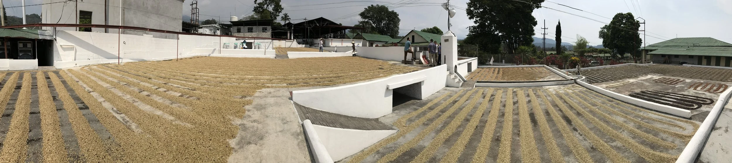 Washed coffee lays out in rows at Finca San Jeronimo Miramar in Guatemala, ready to be collected, bagged, and exported.