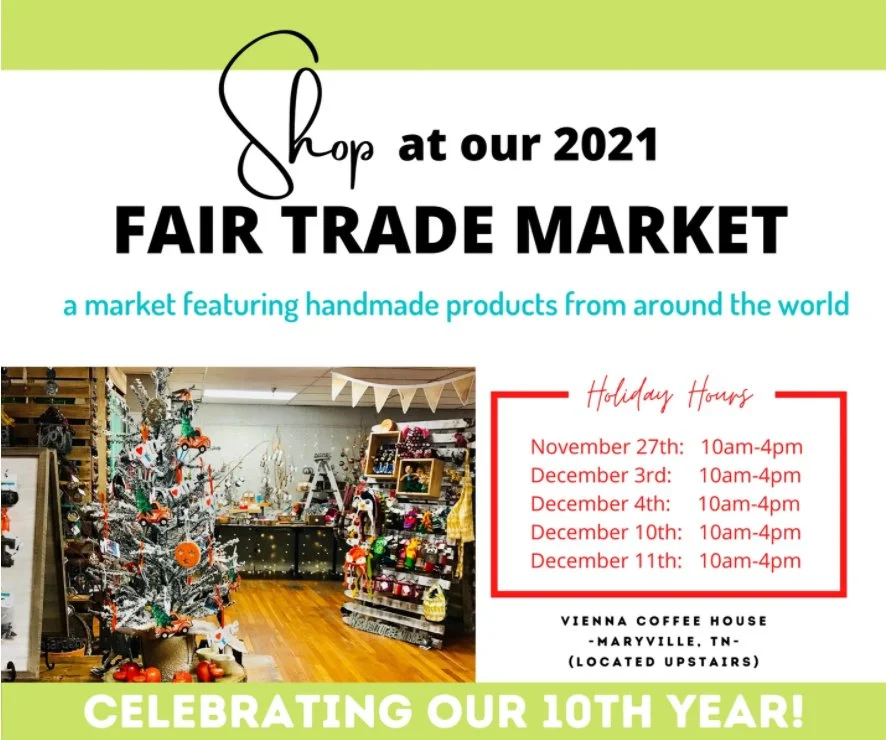 We are excited to host the Beautifully Made Fair Trade Market in the Loft of the Vienna Coffee House beginning November 27.