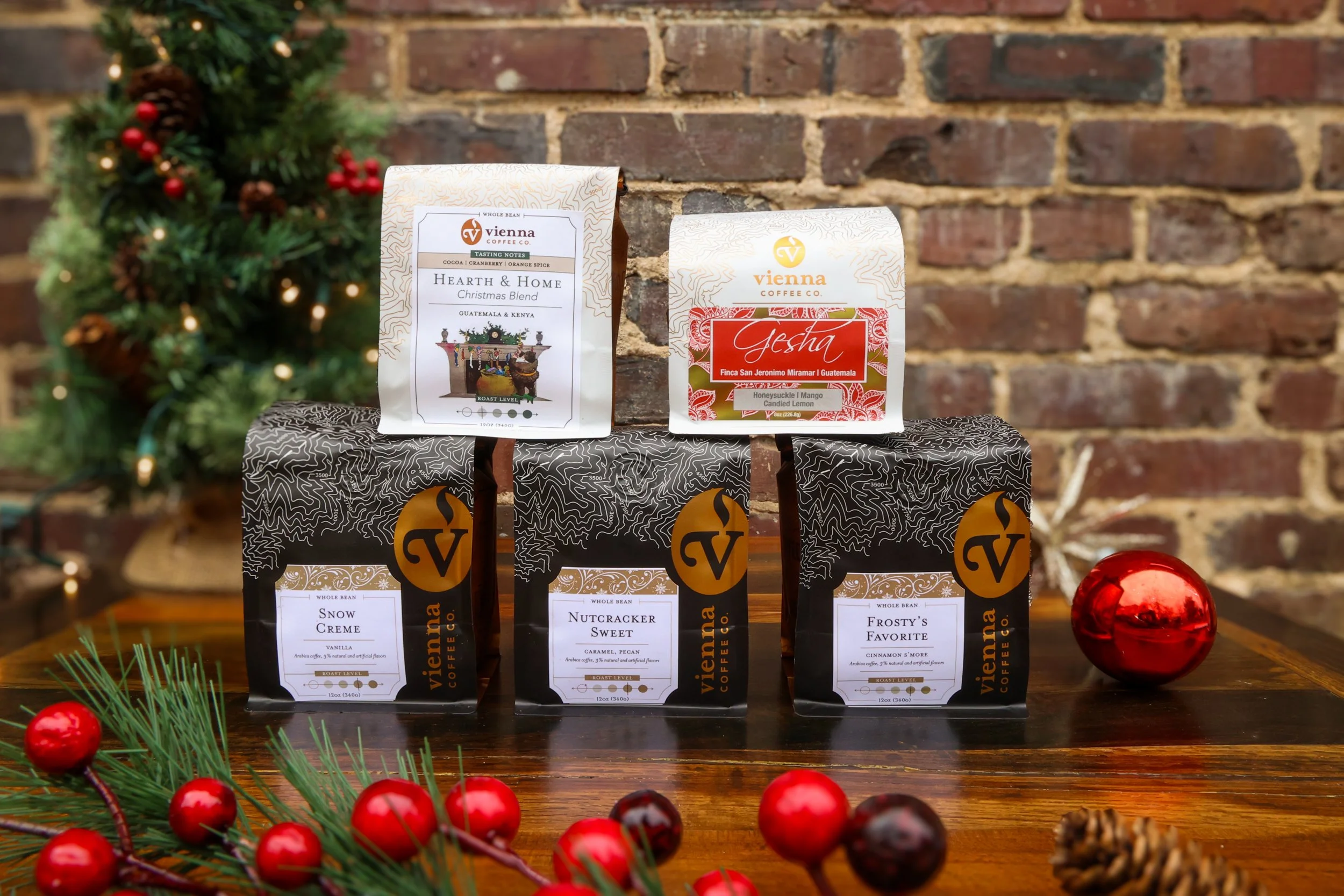 This year our delicious and rich Hearth and Home Christmas Blend is a combination of coffee from Guatemala and Kenya and spiked with that same Gesha - a perfect blend for cozying up next to the hearth this holiday season with subtle notes of cocoa, cranberry, and orange spice.
