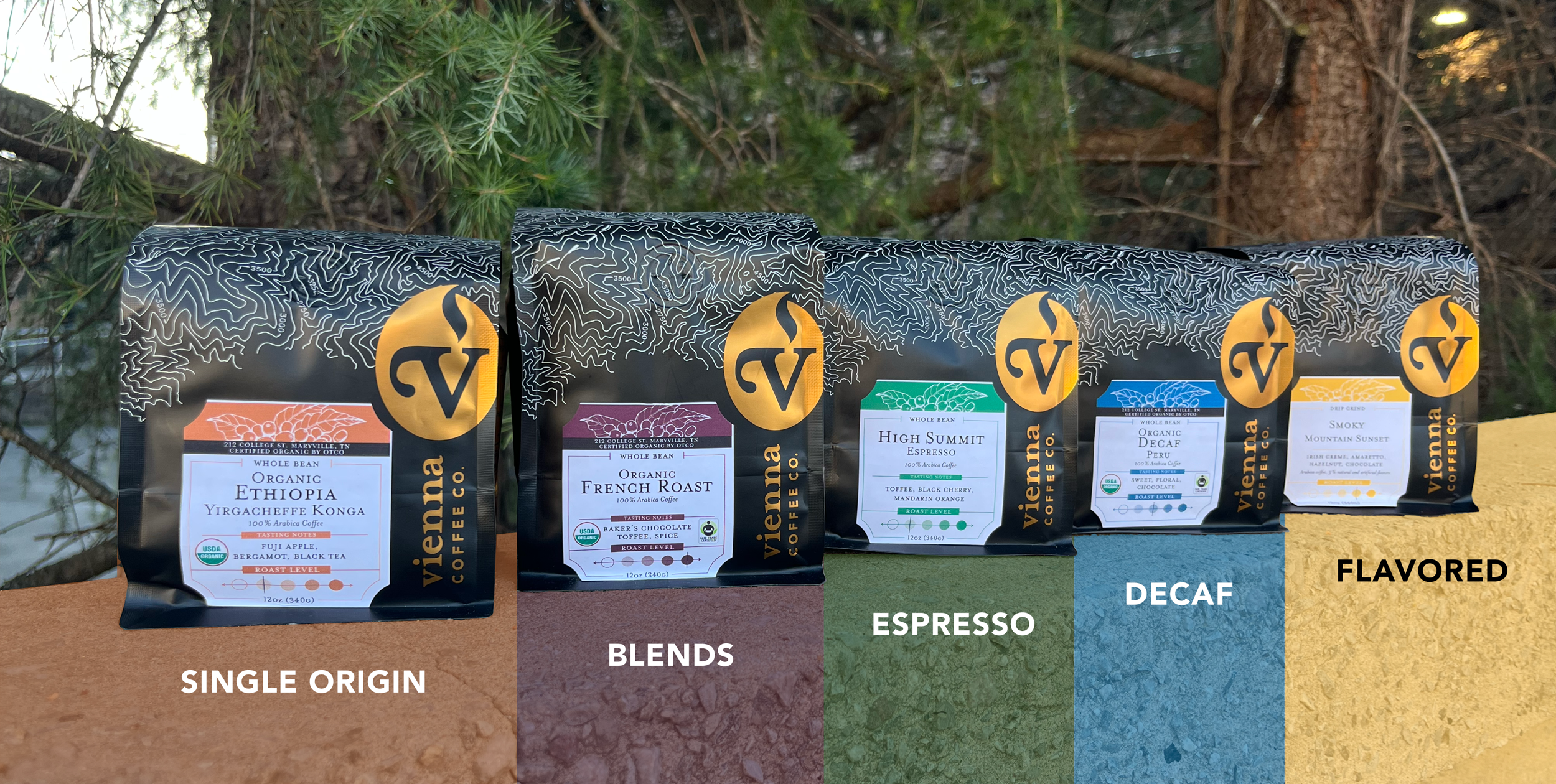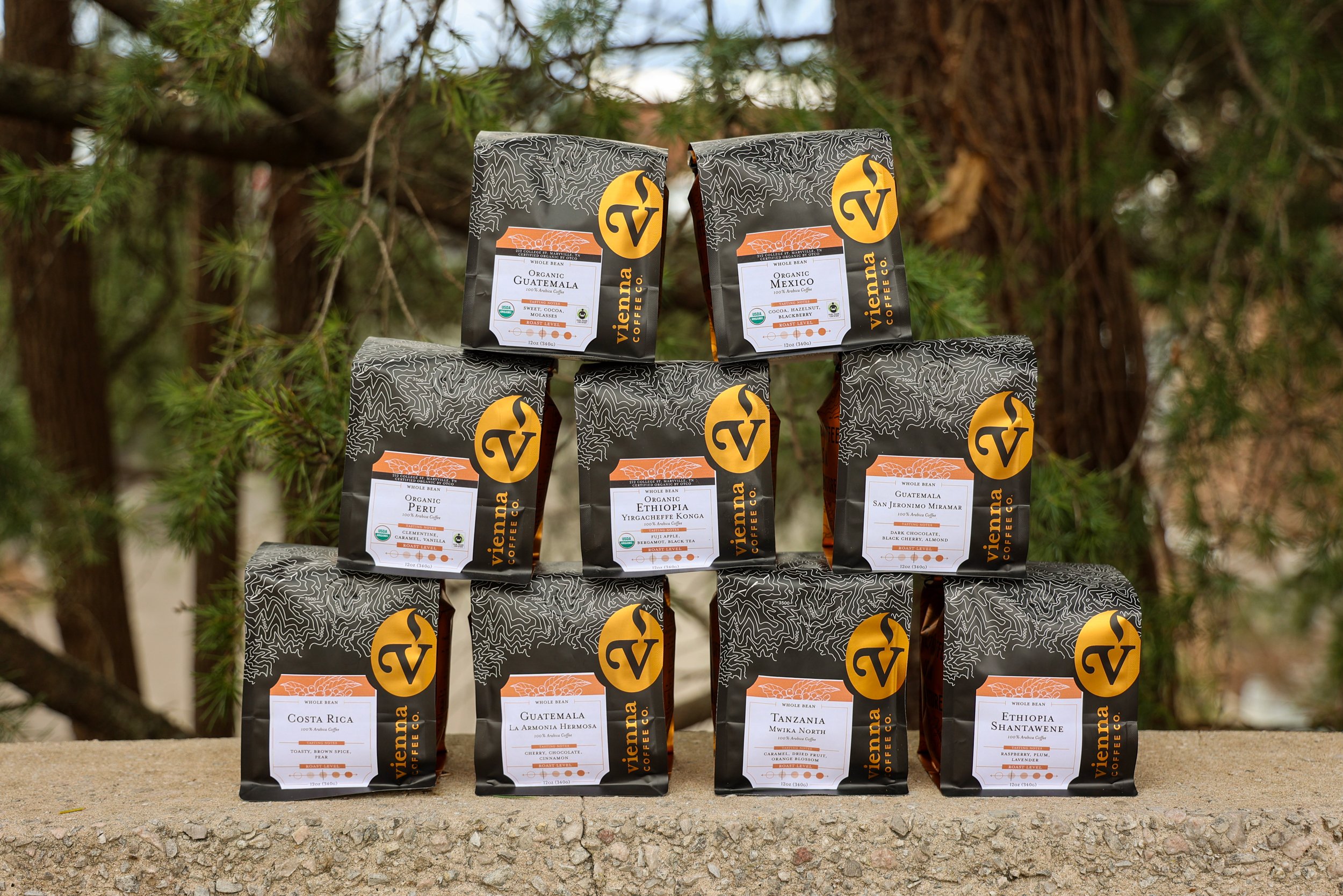 You can easily find our single origin coffees by looking for the burnt orange labels.