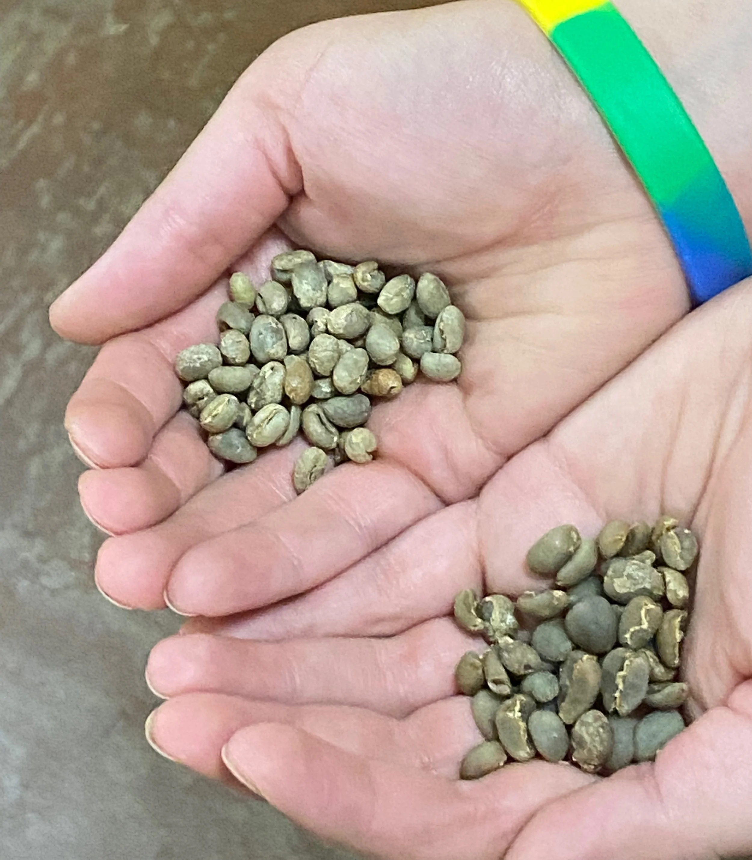 Green peaberry coffee beans compared to traditional beans